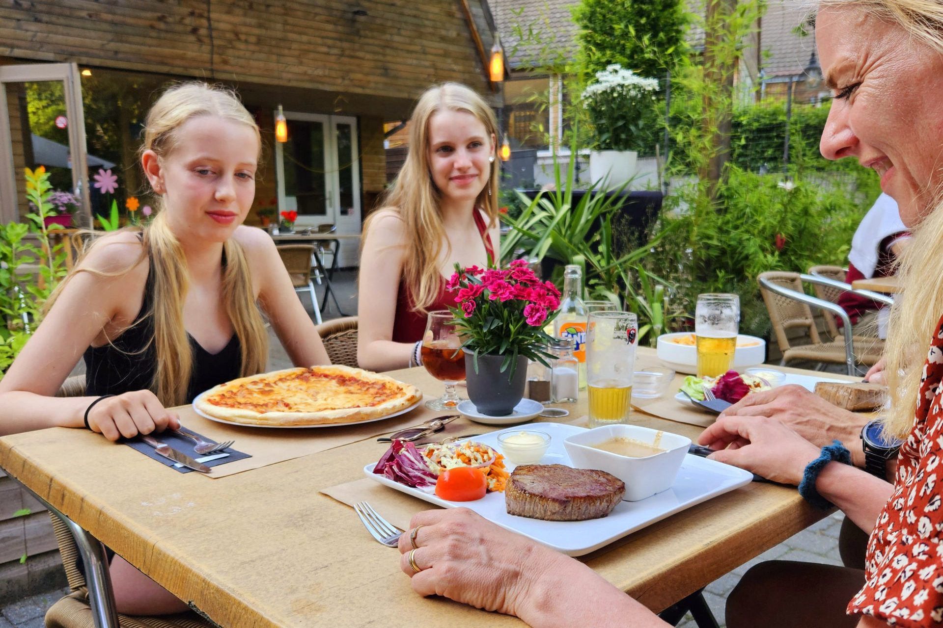 Terwijl de kindjes spelen in de nabijgelegen speeltuin, kunnen de ouders genieten op de ruime zonnige terras.